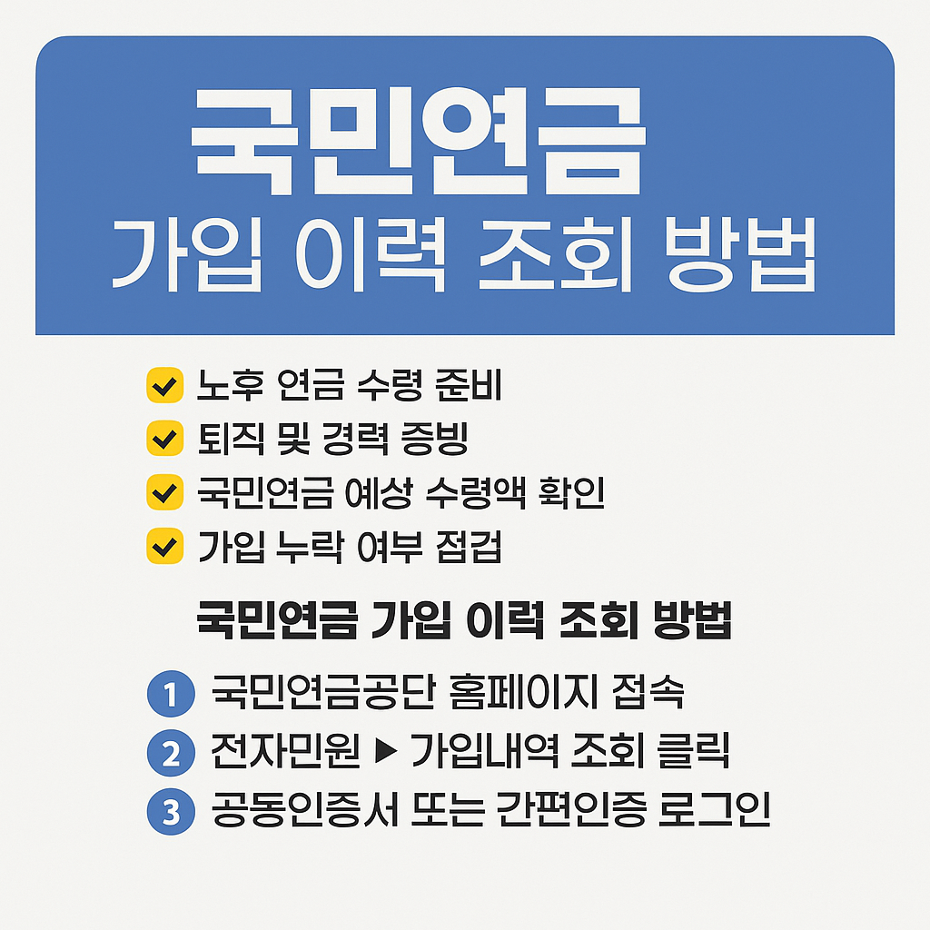 퇴직이나 이직, 연금 수령 준비를 하다 보면 반드시 확인해야 하는 것이 바로 국민연금 가입 이력입니다. 이 글에서는 국민연금의 가입 내역을 쉽고 정확하게 조회하는 방법과 활용 팁을 함께 소개합니다.