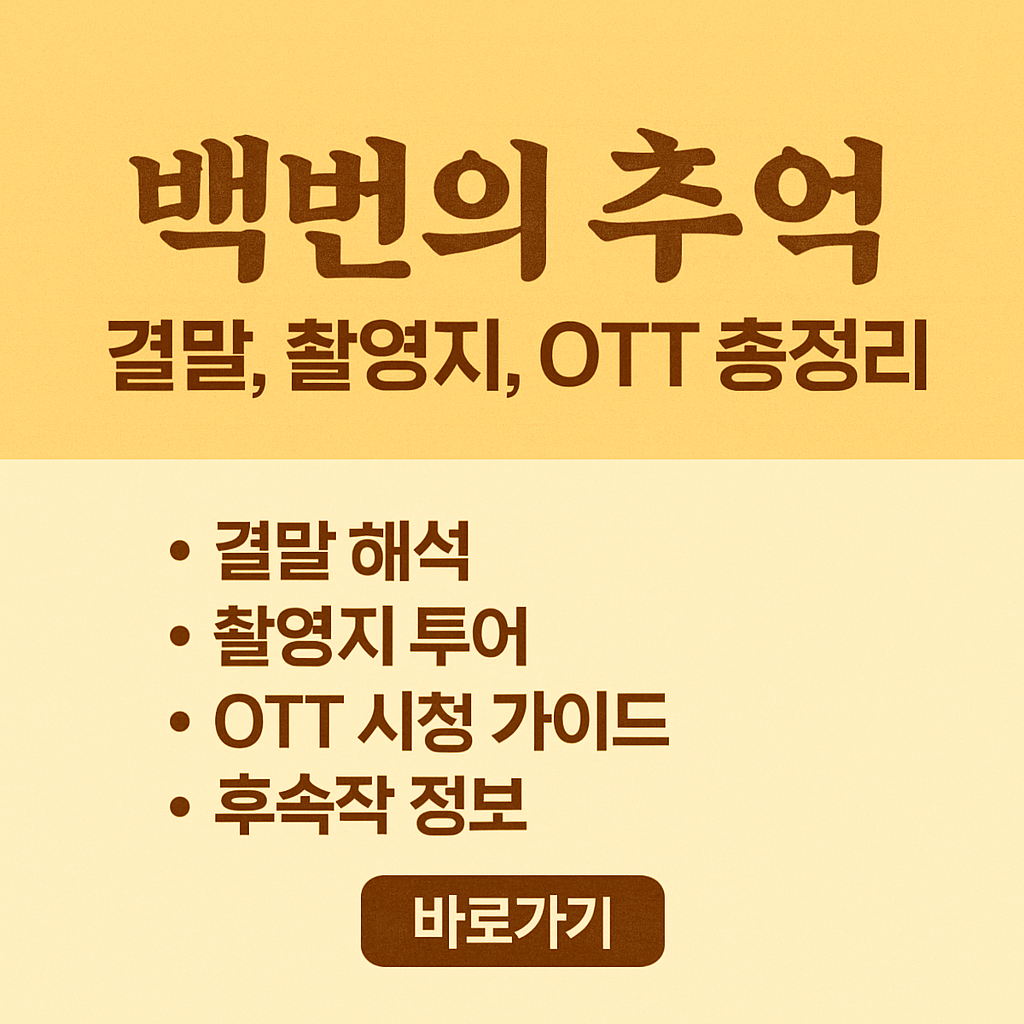 2025년 가을, JTBC 토일드라마 ‘백번의 추억’이 따뜻한 여운과 함께 막을 내렸습니다. 1980년대 서울을 배경으로 우정과 성장, 첫사랑을 그린 이 드라마는 감성적인 결말과 실제 촬영지, OTT 공개 등으로 큰 관심을 모았는데요. 이번 글에서는 결말 해석부터 촬영지, OTT 정보, 후속작까지 한눈에 정리해 드립니다.